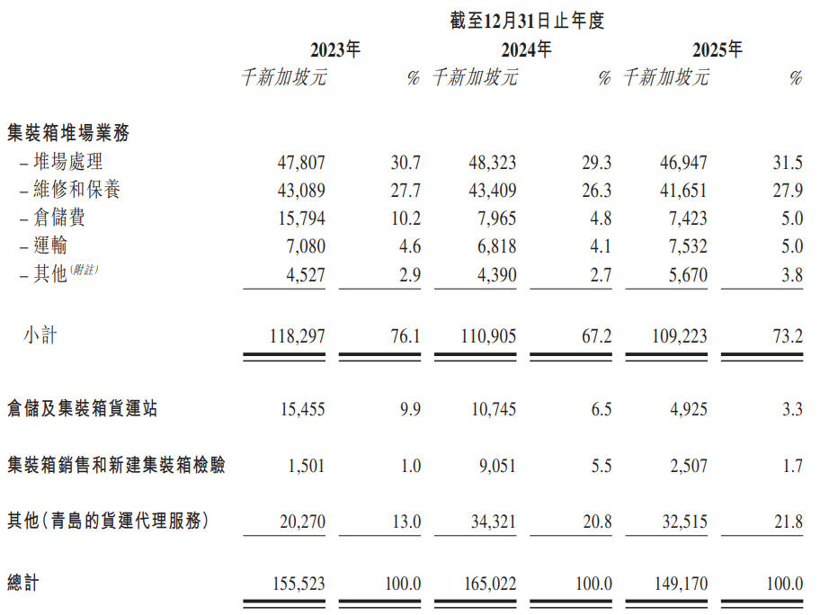 资料显示,永康控股的业务模式主要是提供空箱的储存和处理、维修和保养以及运输。按2025年的集装箱吞吐量计算,永康控股是新加坡领先的及东南亚第二大的集装箱堆场营运商(按照弗若斯特沙利文报告,其在新加坡拥有最高市占率16.2%及在东南亚拥有市占率5.9%),主要为在东协地区及中国营运的集装箱航运公司和集装箱租赁公司提供服务。
