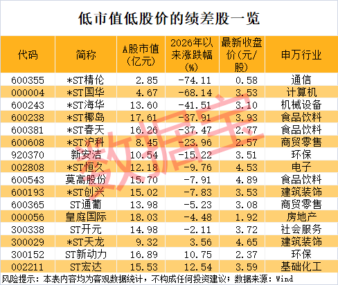 低市值低股价的绩差股名单