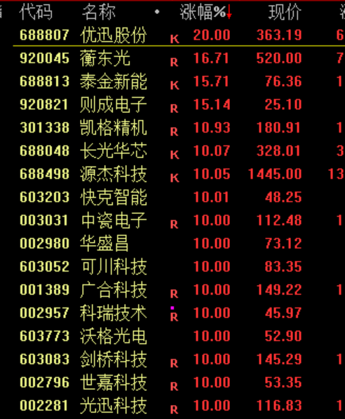 算力硬件股持续走强,源杰科技大涨近10%,股价超越贵州茅台,登顶A股新“股王”,剑桥科技、可川科技、光迅科技等涨停创新高。