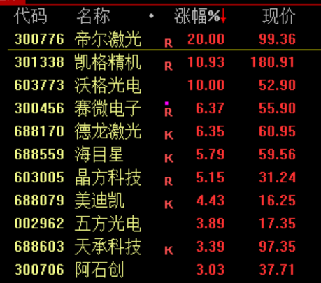 玻璃基板封装概念股反复活跃,沃格光电7天4板,帝尔激光涨停。