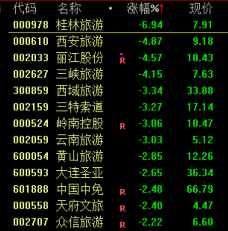 下跌方面,旅游板块调整,桂林旅游、丽江股份跌超5%。