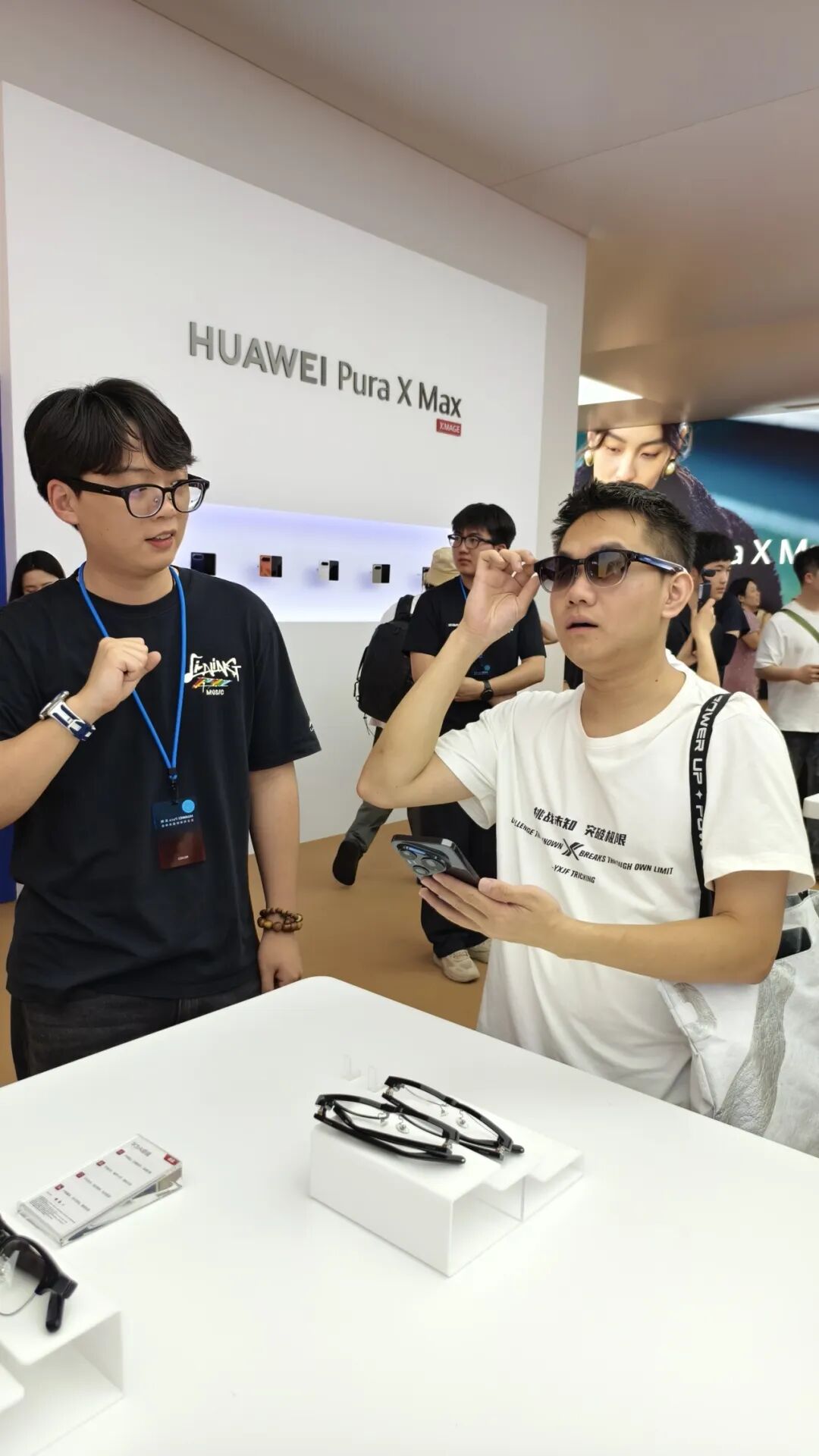 发布会现场,用户体验华为AI眼镜。上证报记者时娜摄