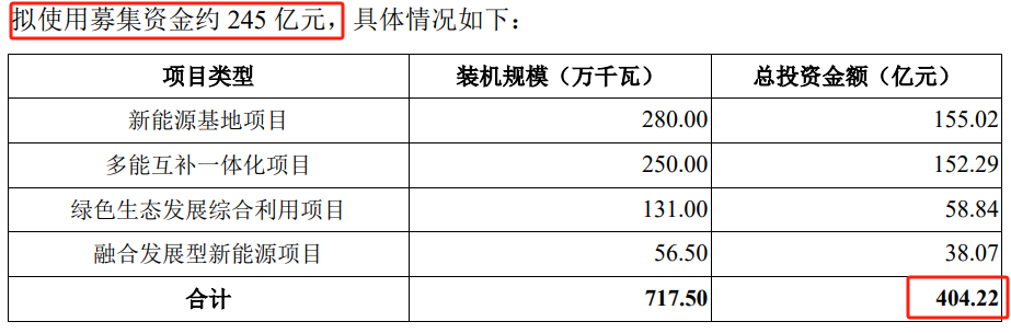 华润新能源预计募资245亿元,用于风力发电、太阳能发电项目建设。项目总投资额为404.22亿元,计划使用募集资金投入约60%。此次募资将增强公司资产规模,进一步拓展风电、太阳能发电业务优势,巩固主营业务竞争力。