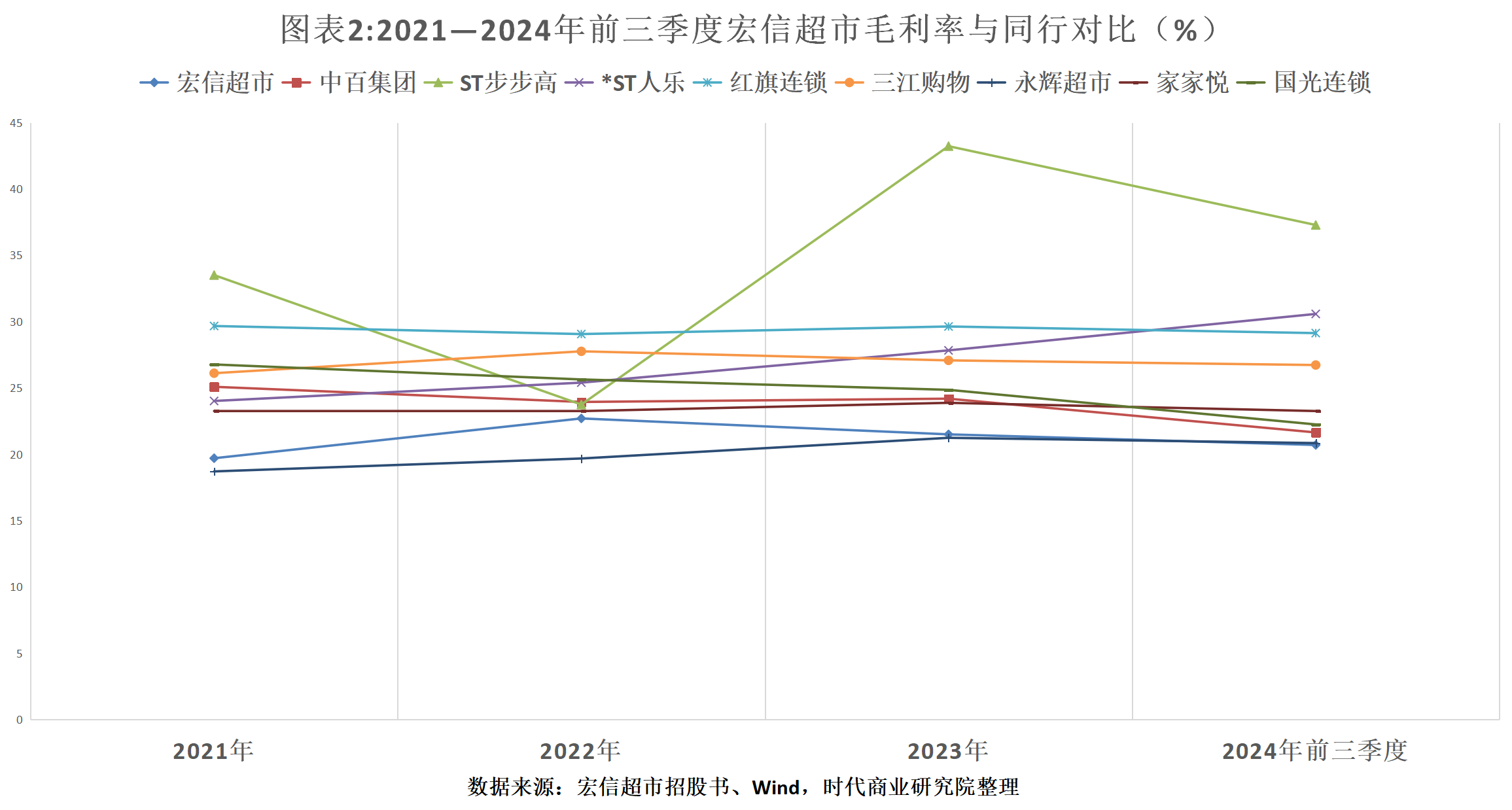 业务重心转向B端,虽然能勉强支撑宏信超市的营收增长,但要维持盈利能力并不容易。报告期各期,宏信超市的毛利率呈先上升后下降趋势,且远低于超市行业A股上市公司均值。特别是批发业务,毛利率明显较低,存在进一步下滑风险。