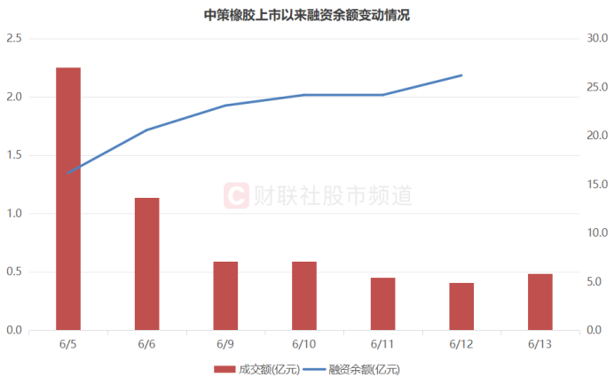 注:中策橡胶上市以来融资余额变动情况(截至6月12日数据)