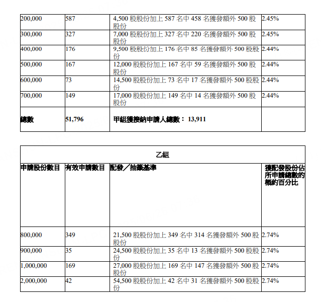 圣贝拉公布招股结果,香港公开发售接获193倍超高认购,一手(500股)中签率仅2.54%,认购2.5万股可稳获一手。按回补机制,公开发售股份增至4,771万股,占发售总数43.48%。国际发售也录得15.59倍认购。招股价定为6.58港元,集资净额达6.3亿港元。股份预期今日(26日)正式上市。