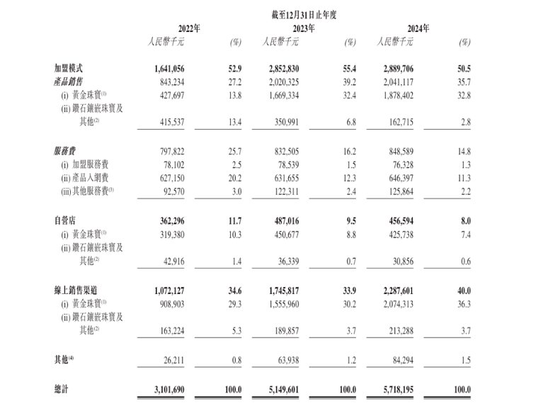 2022年至2024年,周六福业绩攀升,收入从31.02亿元涨至57.18亿元,净利润从5.75亿元增至7.06亿元。