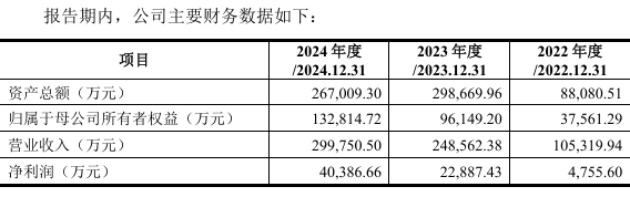 财务数据显示,公司2022年—2024年公司实现营业收入分别为10.53亿元、24.86亿元、29.98亿元,实现净利润分别为4755.60万元、2.29亿元、4.11亿元。增幅方面,2024年公司营业收入增长20.59%,净利润同比增长79.44%。