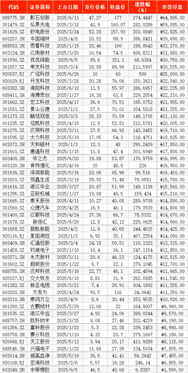 2025上半年新股市场表现:零破发与高浮盈