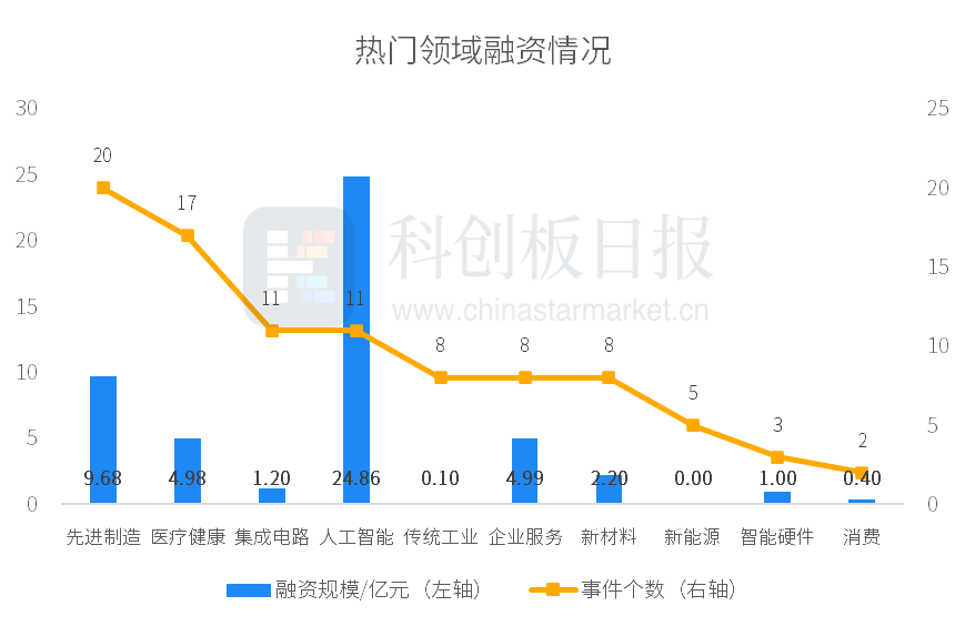 《科创板日报》7月19日讯财联社创投通数据显示,本周(7.12-7.18)国内投融资市场活跃,共发生97起投融资事件,较上周增加21.25%;已披露融资总额约50.41亿元,较上周增加8.85%。热门领域中,先进制造、医疗健康、集成电路、人工智能等领域较活跃,其中人工智能融资总额最多,约24.86亿元。MiniMax近期完成近3亿美元融资,为本周最高。