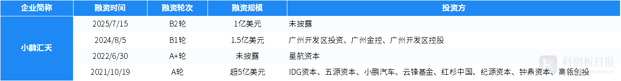 小鹏汇天完成2.5亿美元B轮融资,致力于低空载人飞行器研发。