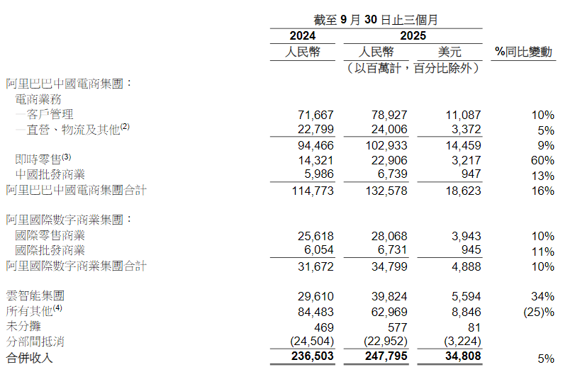 阿里巴巴集团财报显示:AI+云、大消费业务强劲增长