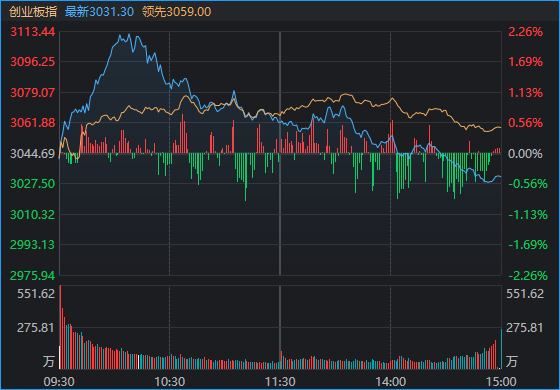 11月27日,市场冲高回落,三大指数涨跌不一,创业板指、深成指先后翻绿,创业板指此前一度涨超2%。截至收盘,沪指涨0.29%,深成指跌0.25%,创业板指跌0.44%。