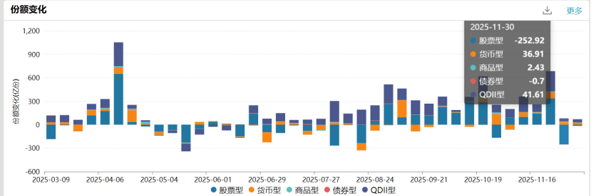 股市资金再次流出,非货ETF上周净赎回超200亿份。临近年末的获利了结可能是主要原因。本周资金继续流出。