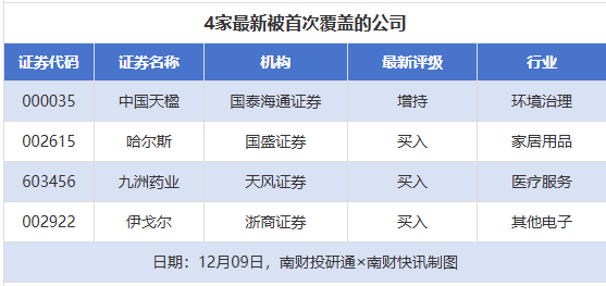 从券商推荐家数来看,12月9日有10家上市公司得到券商推荐,包括中国天楹、哈尔斯、江苏银行等均获得1家推荐。