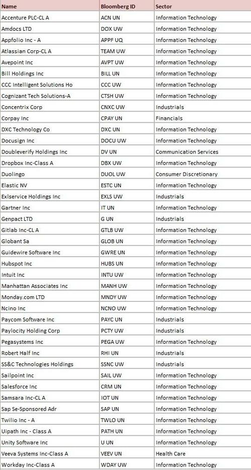 那么,在高盛代表软件赢家(GSTMTSOL)和软件输家(GSTMTSOS)的篮子里,究竟包含了哪些个股呢?以下是两张具体清单: