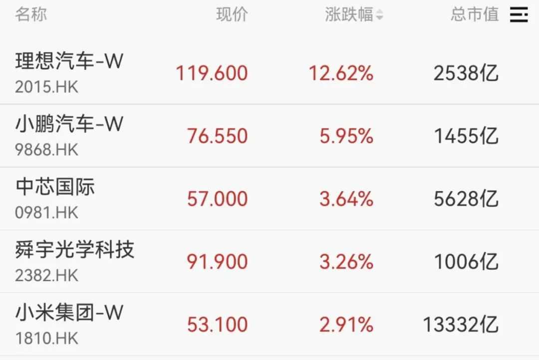 港股市场上,新能源汽车股逆市走强,其中理想汽车大涨超13%,小鹏汽车、吉利汽车、蔚来等个股也纷纷跟涨。