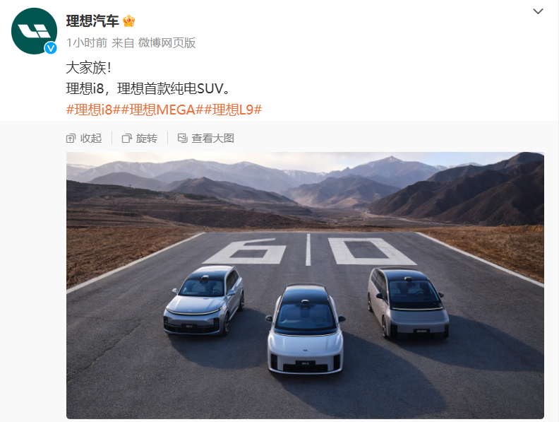 消息面上,理想汽车今日发布了首款纯电SUV“理想i8”。