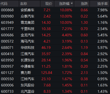 智能驾驶板块表现同样活跃,安凯客车、锐明技术涨停,欧菲光、日盈电子、中海达等个股也纷纷跟涨。