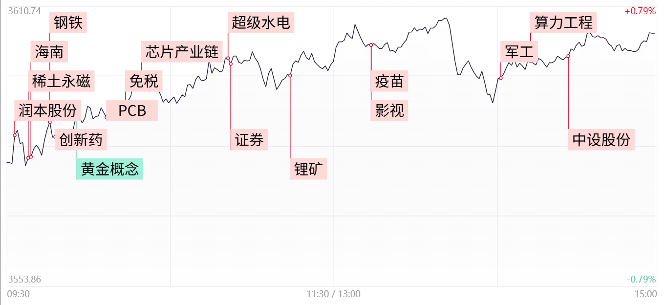海南概念股全线爆发,康芝药业等20余股涨停。国家发改委表示,海南自贸港封关时间定于2025年12月18日。中信证券认为,离岛免税政策将继续保持竞争优势。稀土板块全天领涨,包钢股份等涨停,国金证券表示,稀土价格有望继续看涨。锂矿股同样震荡走高,西藏矿业等涨停,国泰期货表示,锂矿行业有望逐渐摆脱至暗时刻。