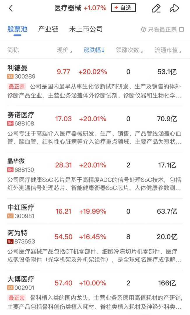 医疗器械概念同样表现活跃,利德曼、赛诺医疗、中红医疗、大博医疗、科华生物、尚荣医疗涨停。