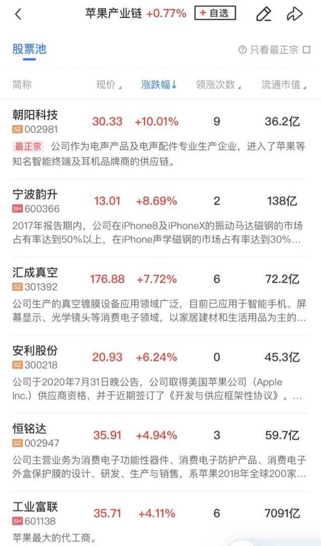 苹果概念股开盘一度冲高,朝阳科技、畅联股份涨停,恒铭达、工业富联、蓝思科技、立讯精密等个股跟涨。消息面上,苹果公司宣布未来四年在美投资总额将达6000亿美元,通过实施“美国制造计划”加速在美国的生产。昨晚美股苹果股价大涨超5%。