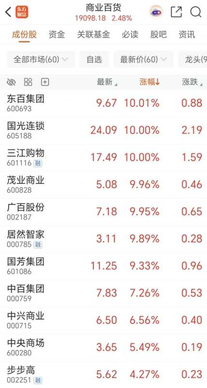 零售股尾盘异动大涨 利好政策助燃消费市场