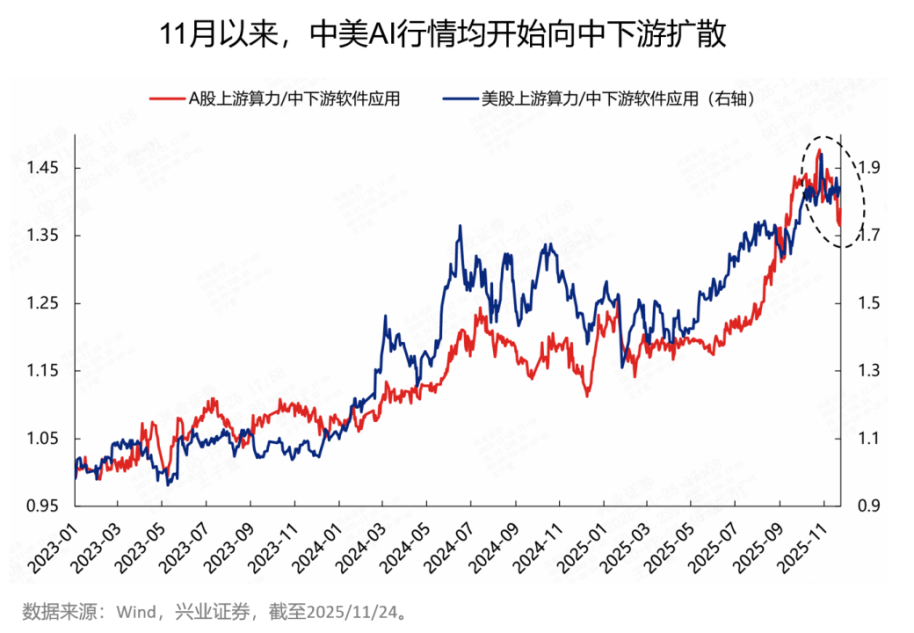 实际上,11月以来中美AI行情已经在往中下游应用扩散,这或是2026年的大趋势。