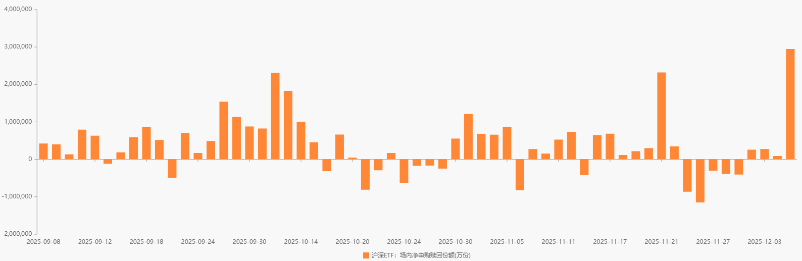 上周五(12月5日),东方财富Choice数据显示,场内股票型ETF净申购294.76亿份;其中,沪市股票型ETF净申购11.36亿份,深市股票型ETF净申购283.4亿份。以最新净值计,上周五市场净申购85.86亿元。