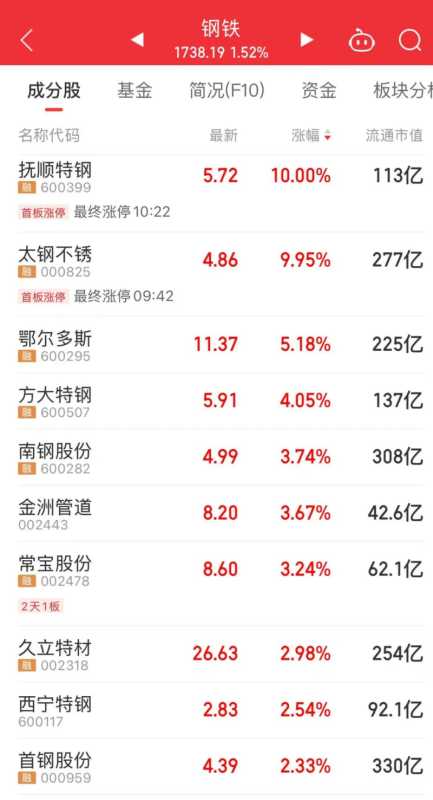 钢铁板块上涨