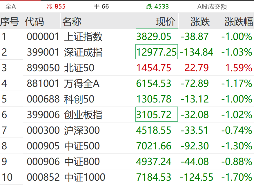 12月16日,上午市场震荡走低,截至发稿,三大指数均跌超1%,超4500只个股下跌;北证50指数逆市飘红。