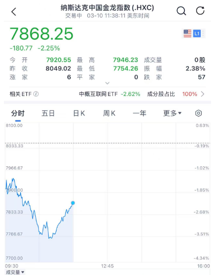 3月10日晚间,美股开盘即大幅下跌,上周对华尔街形成的抛售压力仍在持续。投资者对经济放缓的担忧加剧,特别是在美国总统特朗普未否认关税可能导致经济衰退后,市场情绪进一步恶化。