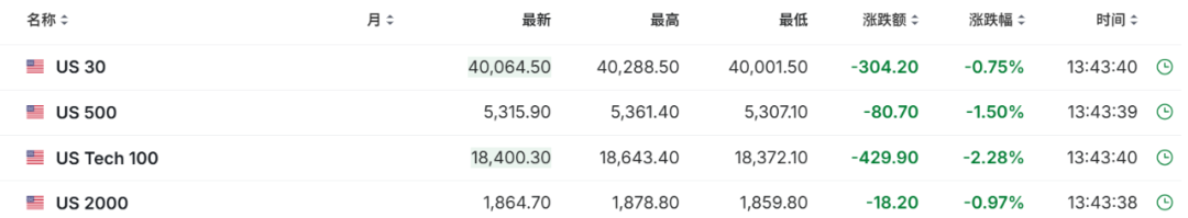 美股期指表现不佳时,亚太市场亦受牵连。今日亚太交易时段,美股期指持续下跌,纳斯达克100指数期货跌幅超2%。