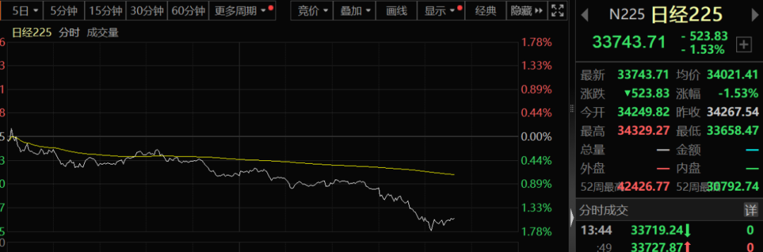 今天午后,日韩股市再度跳水,日经225指数午后跌幅加速扩大至1.6%,港股市场也陷入调整区间。MSCI亚太指数亦跌超1%。与此同时,美股期指跌幅扩大,纳斯达克100指数期货跌超2%,标普500指数期货跌1.5%,道指期货跌0.75%。近日反弹势头较强的欧洲期指亦是全线走弱。