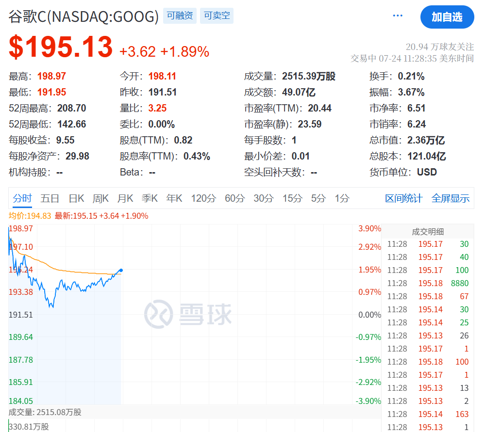 7月24日晚间,美国股市延续创纪录的上涨走势。尽管特斯拉发布了悲观前景,但投资者仍因Alphabet(谷歌母公司)的亮眼财报而情绪高涨。