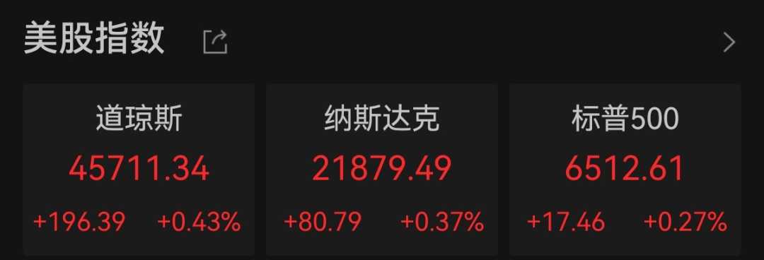 中新经纬9月10日电美东时间周二,美股三大指数均创收盘新高,股市表现引发全球投资者关注。截至收盘,道琼斯工业指数收涨196.39点,涨幅0.43%,报45711.34点;纳斯达克指数收涨80.79点,涨幅0.37%,报21879.49点;标普500指数收涨17.46点,涨幅0.27%,报6512.61点。