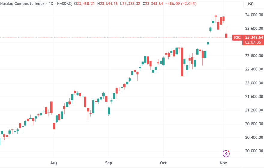 截至收盘,标准普尔500指数跌1.17%,报6771.55点;纳斯达克综合指数跌2.04%,报23348.64点;道琼斯工业平均指数跌0.53%,报47085.24点。