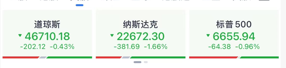 大家好啊,今晚美股依旧不平静,继续跳水!一起看看发生了什么事情。美股又跳水,11月7日晚间,随着科技泡沫担忧加剧,人工智能估值担忧笼罩全球投资者。美股三大指数集体下跌,道指跌约200点,科技股为主的纳指跌超1.6%,标普500指数跌约1%,全球股市动荡不安。