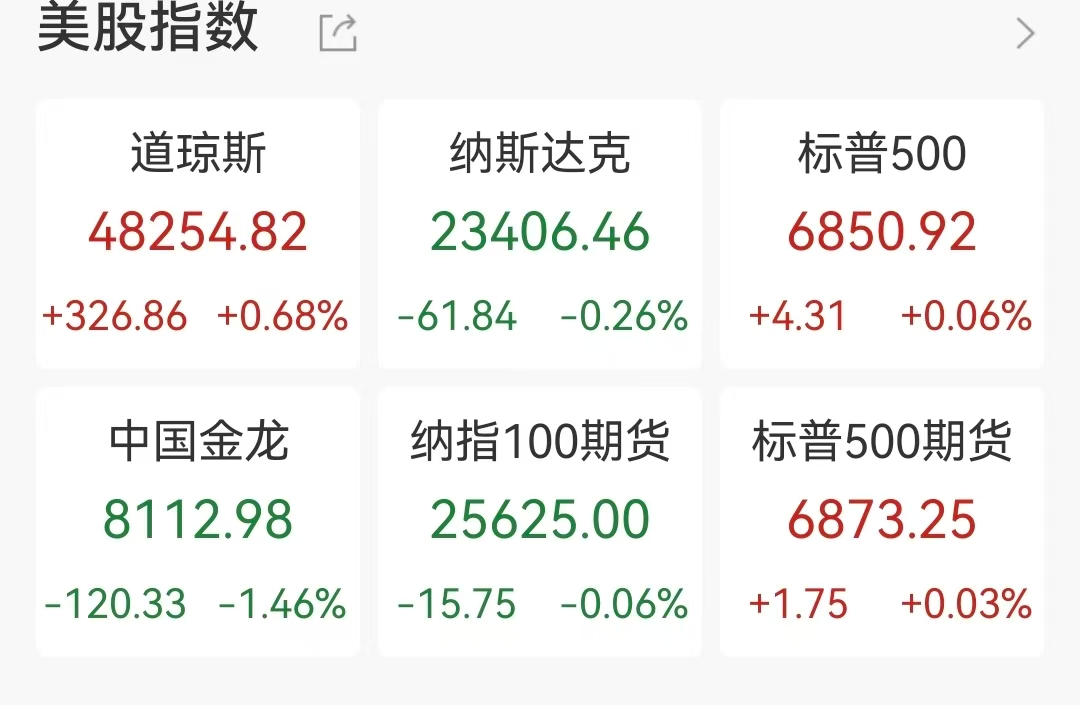 美股涨跌不一,科技股分化,黄金与AI市场受关注