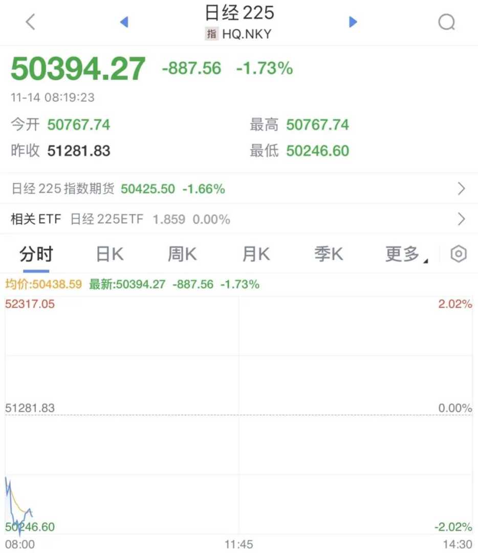 日经225指数跌幅扩大至2%,日本东证指数跌超1%,亚洲股市受挫。