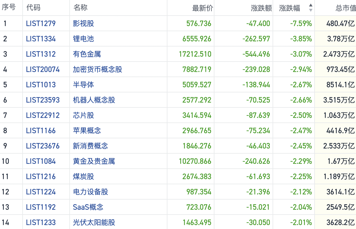 行情层面,隔夜美股大跌,叠加亚太股市集体疲软,今日港股行情明显受到冲击,各大热门板块几乎全线下行。其中,影视、锂电、有色等短线上涨过快的板块跌幅居前,存量资金兑现意愿强烈。一度被市场寄予厚望的科技股在业绩披露后,也未有明显起色,市场期待新催化剂。